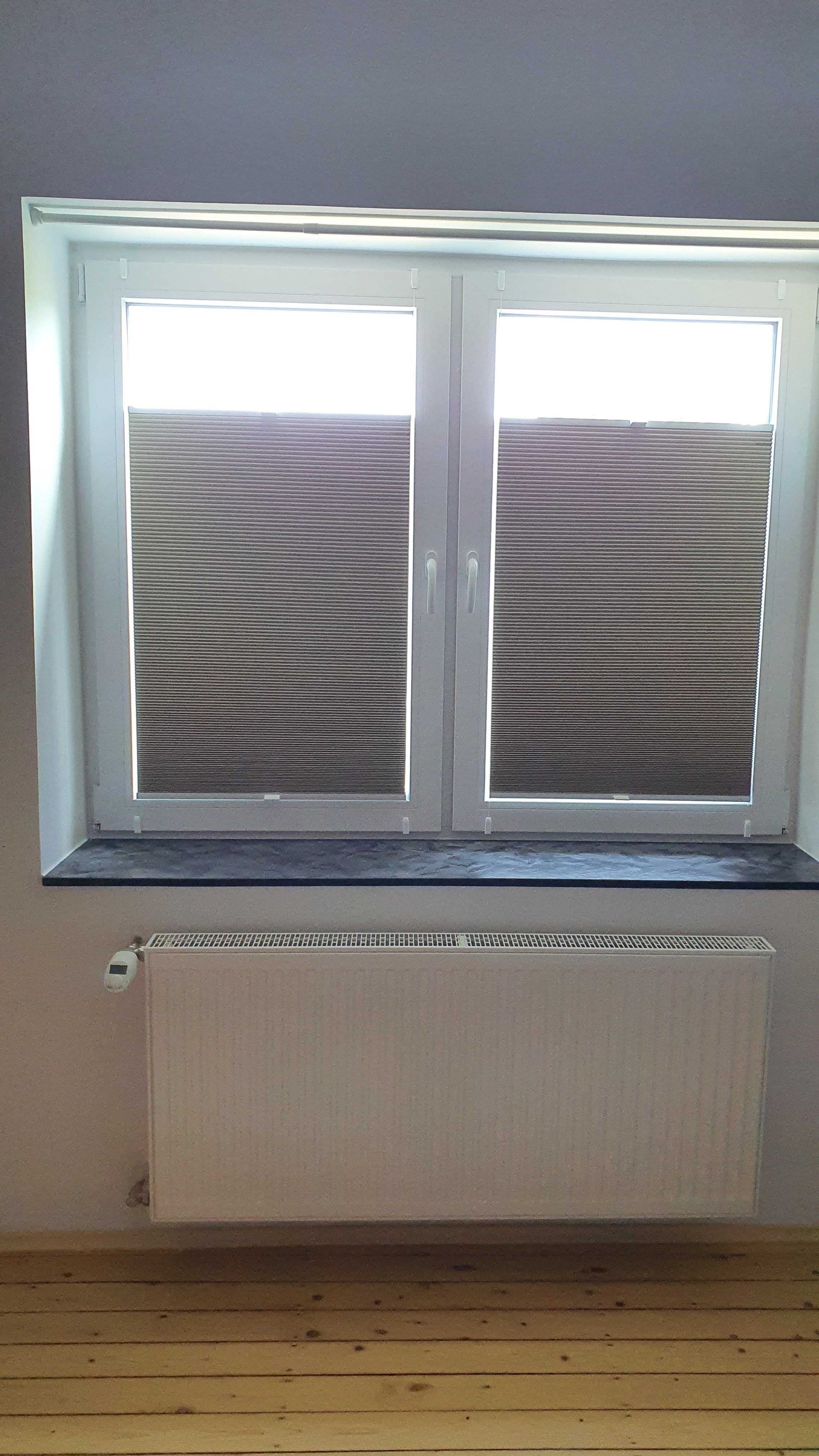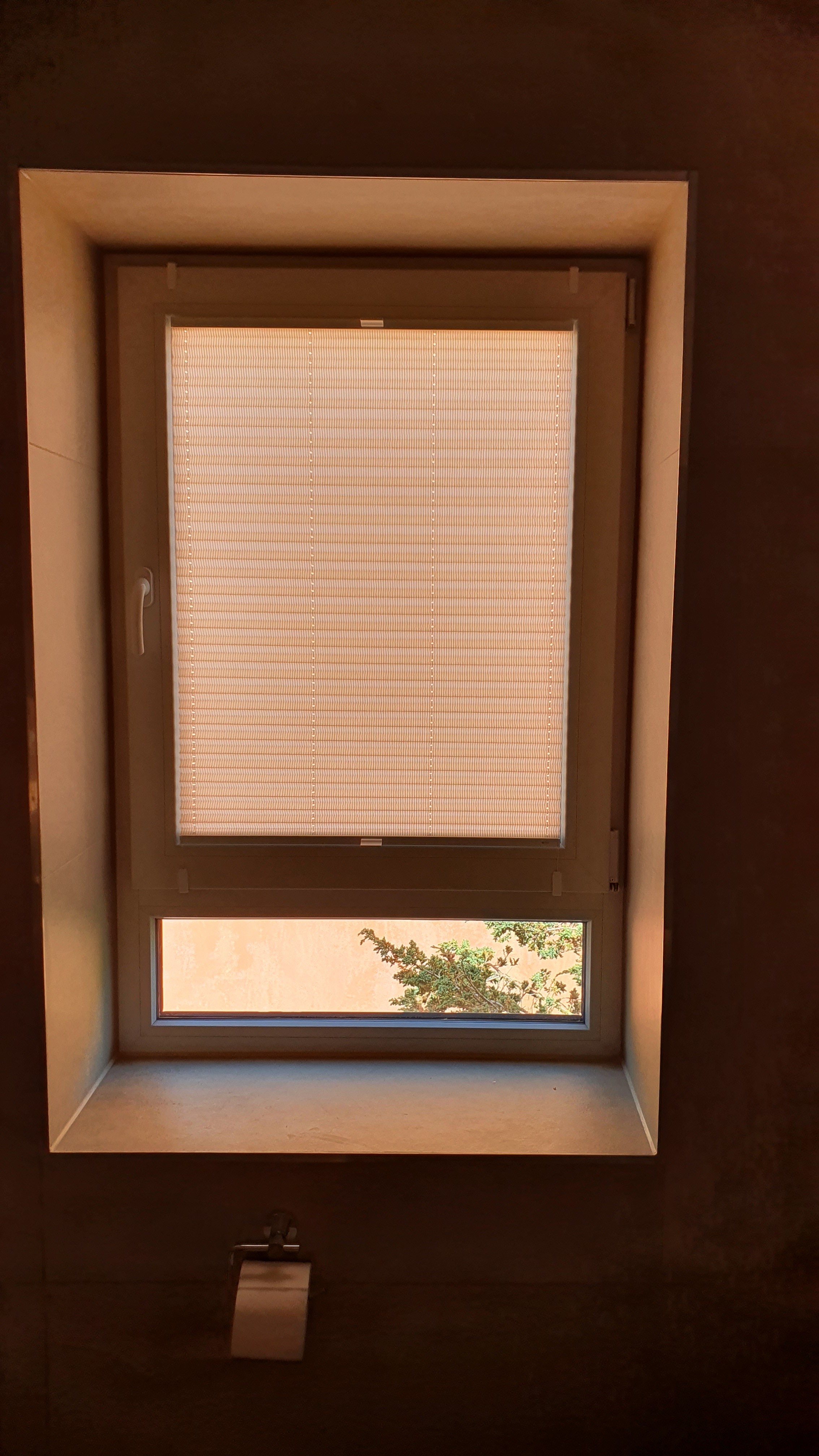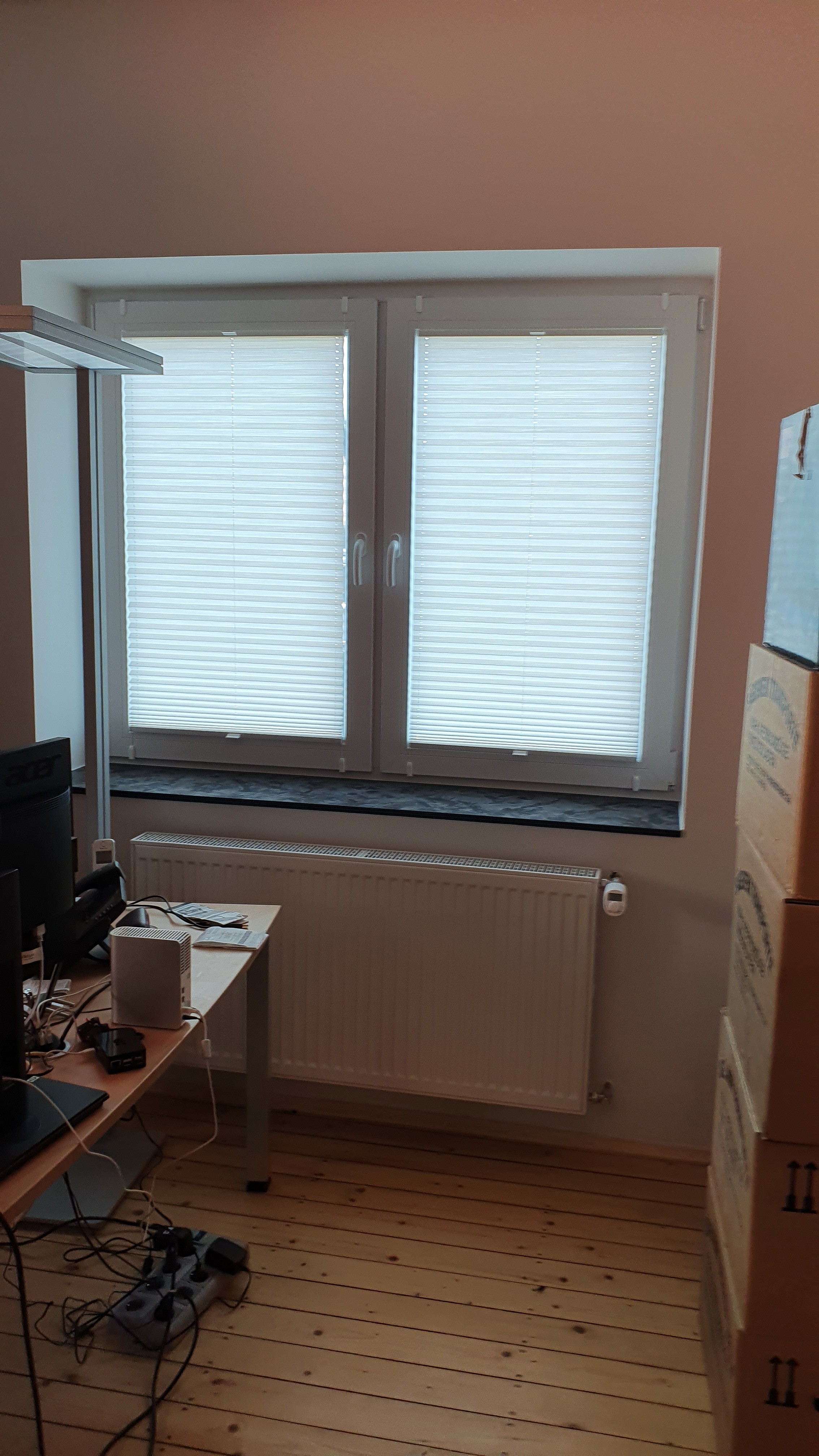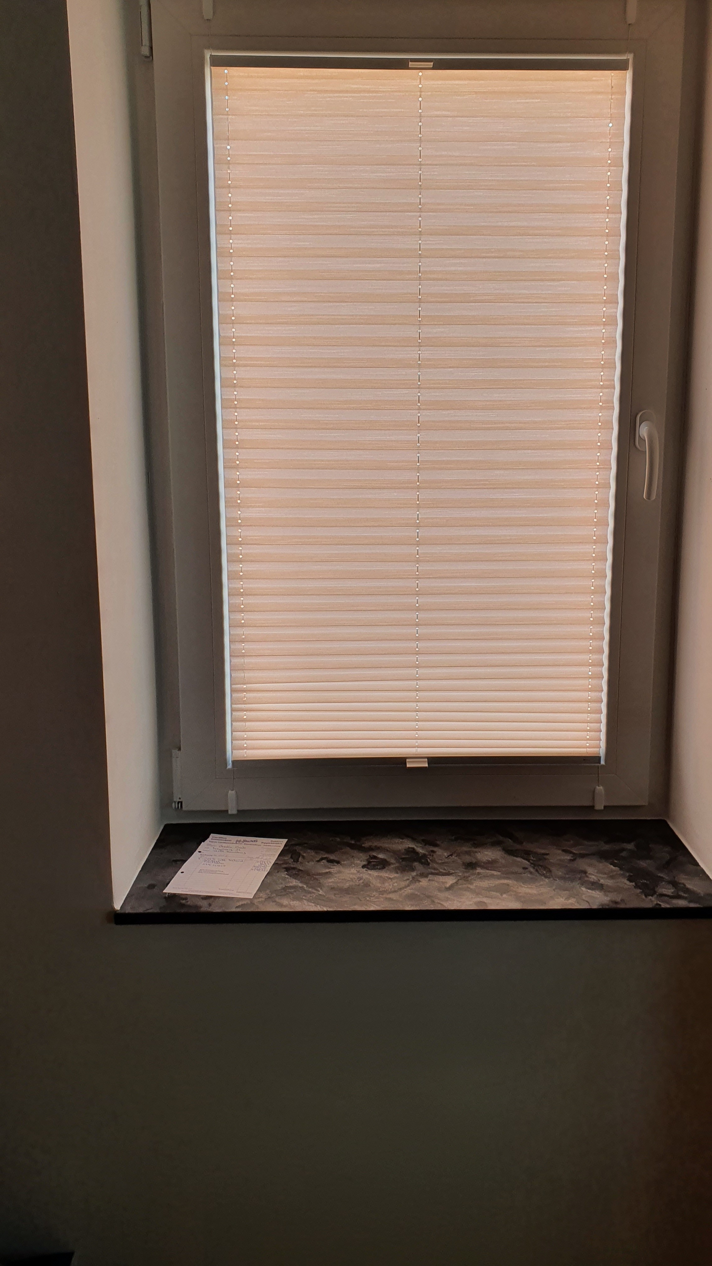 I was given the task of finding a supplier for blinds. You can choose and fit these yourself, it’s really only a matter of measuring carefully and choosing the style you want. But, as with so many things, we knew we needed a bit more help. I soon found Mr Prast in the nearby Duisburg Großenbaum, 30 minutes by bike, and he came round to discuss and measure. The priority was for the bedroom and upstairs bathroom.
