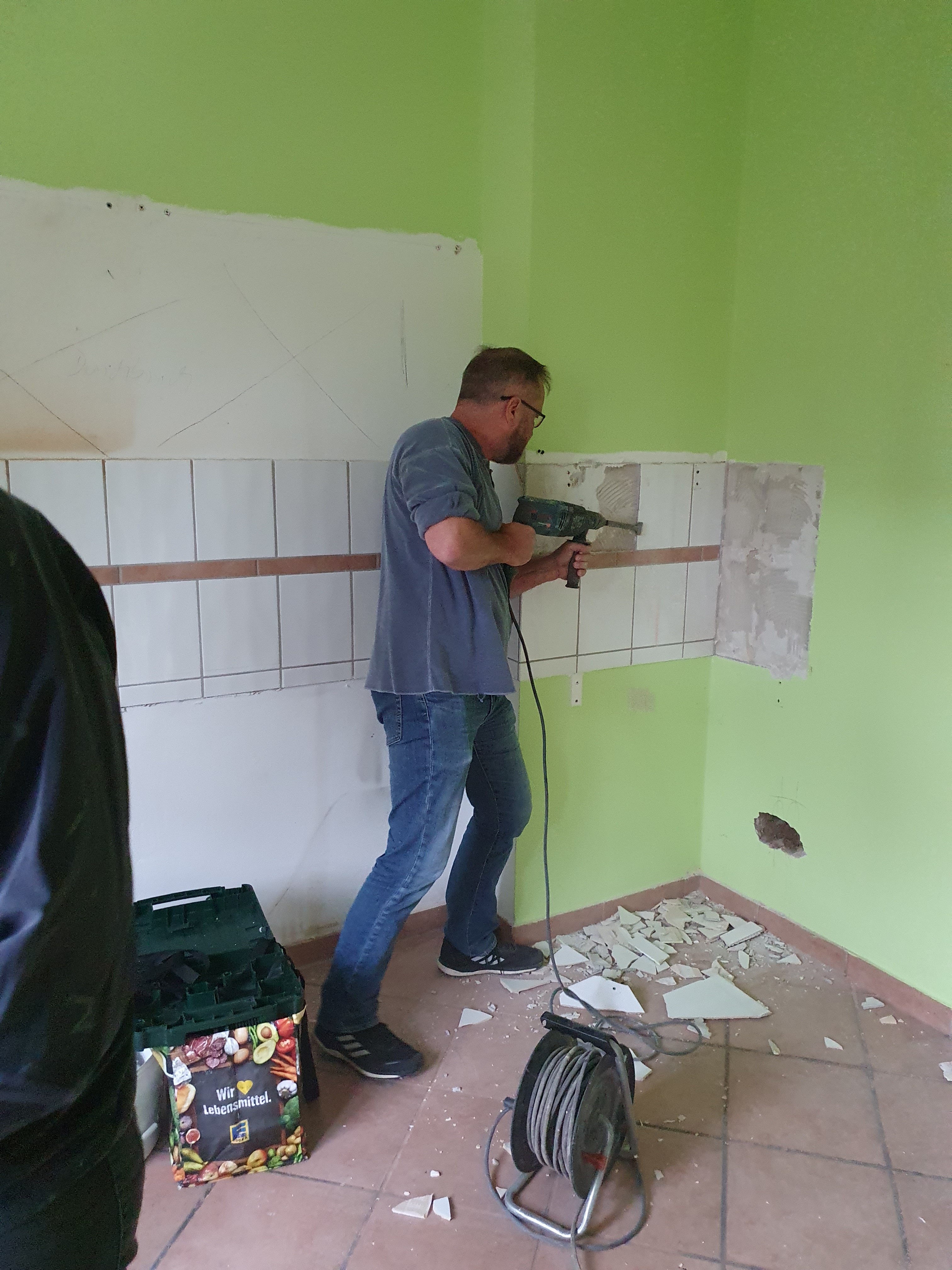 Everyone was impressed with the skylights and that work has started in earnest on the house. But, as we have been having trouble getting hold of tradesmen, there were prompt offers to help dismantle the kitchen so that work on the electrics could proceed.