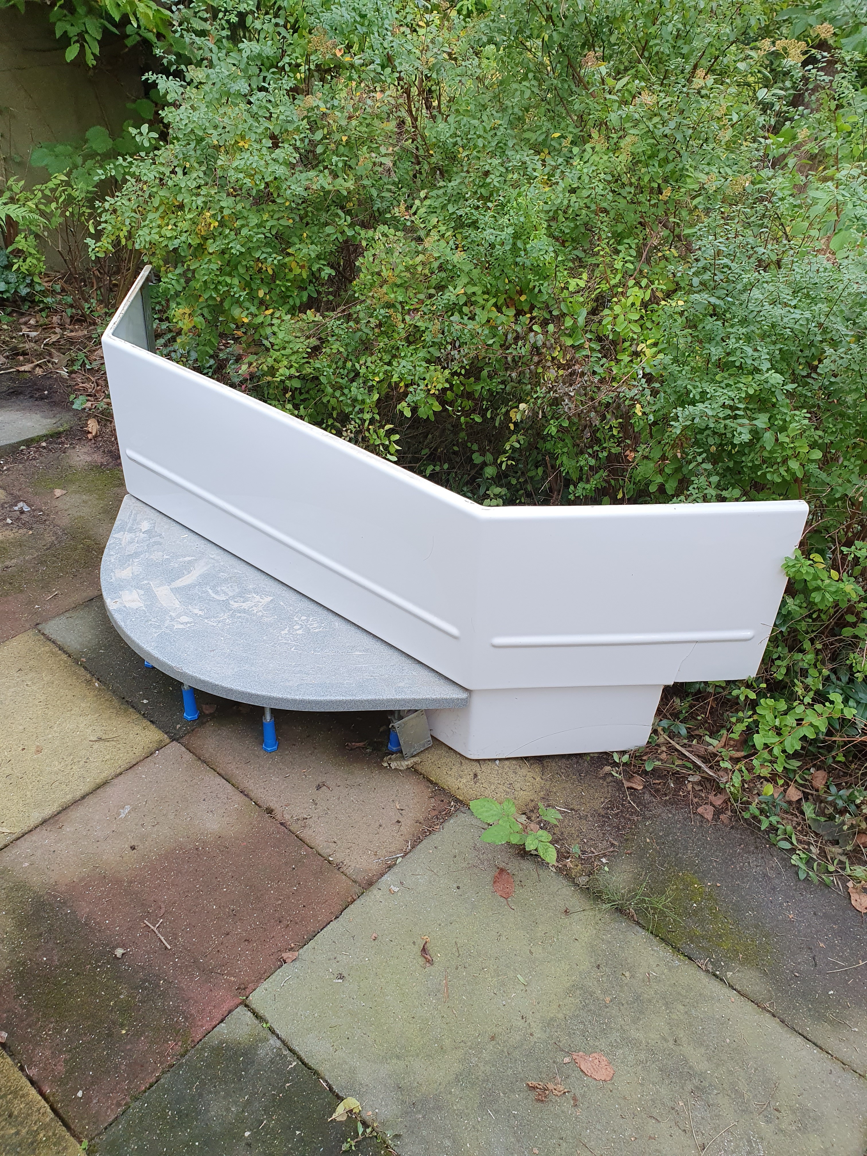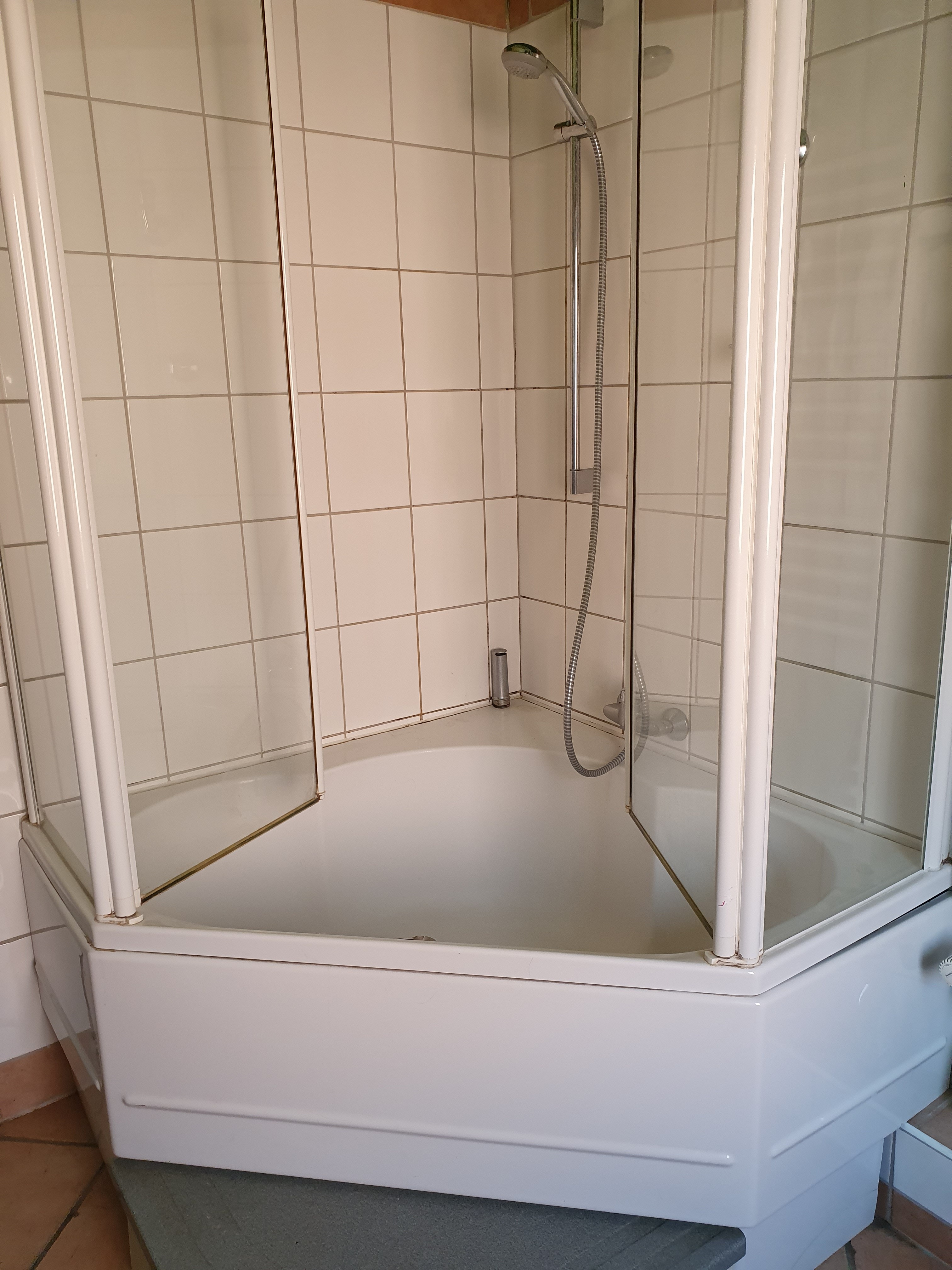 Originally there was a bath next to the window and a loo in the corner. Moving things around meant that the shower had to be raised in order for the water to be able to flow away. The extra height makes getting in, and particularly getting out of the shower, a bit of a challenge.