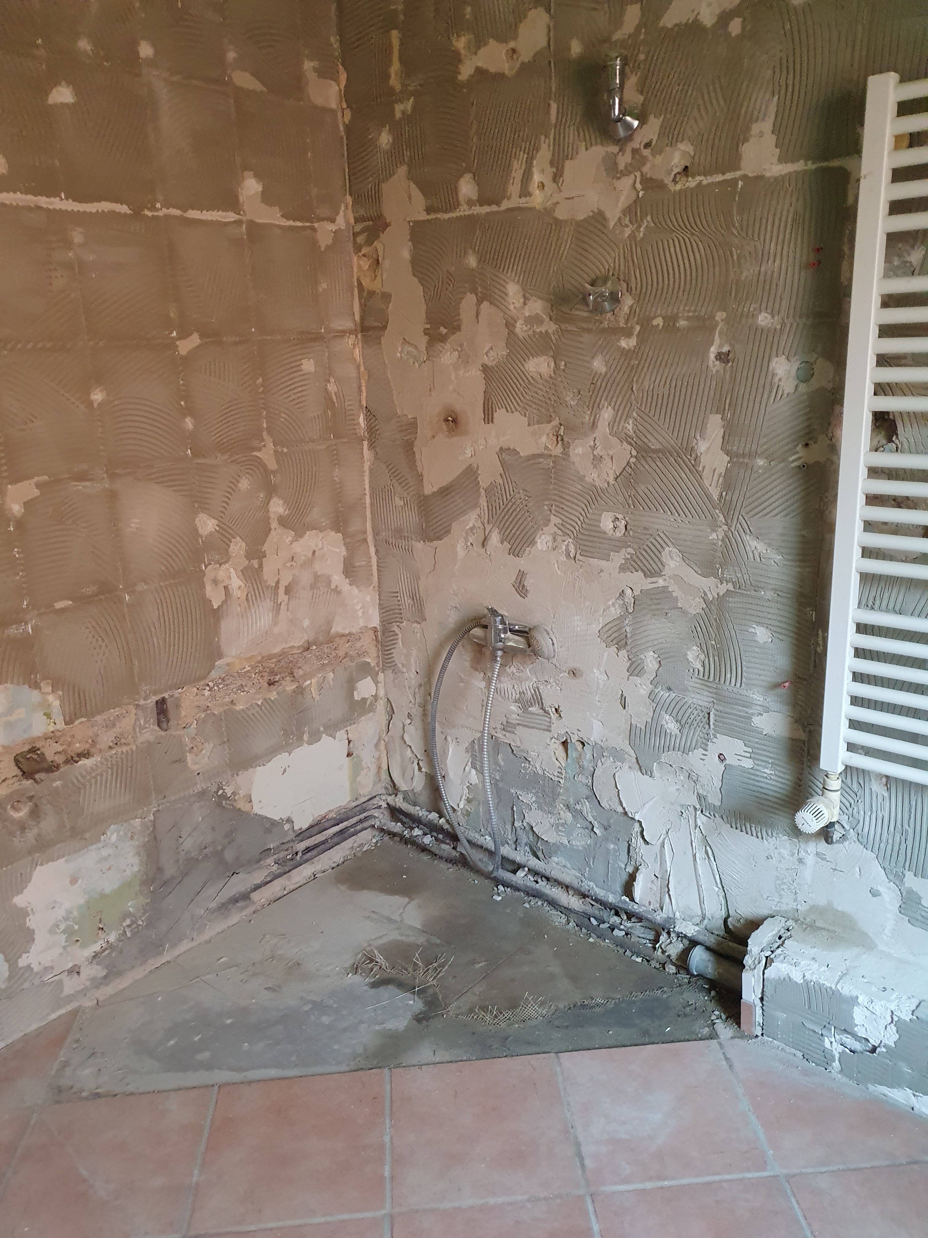 And moving the toilet to the other side of the window meant that this was no longer connected to the sewage pipe. So again, an extension had to be added in front of the wall.