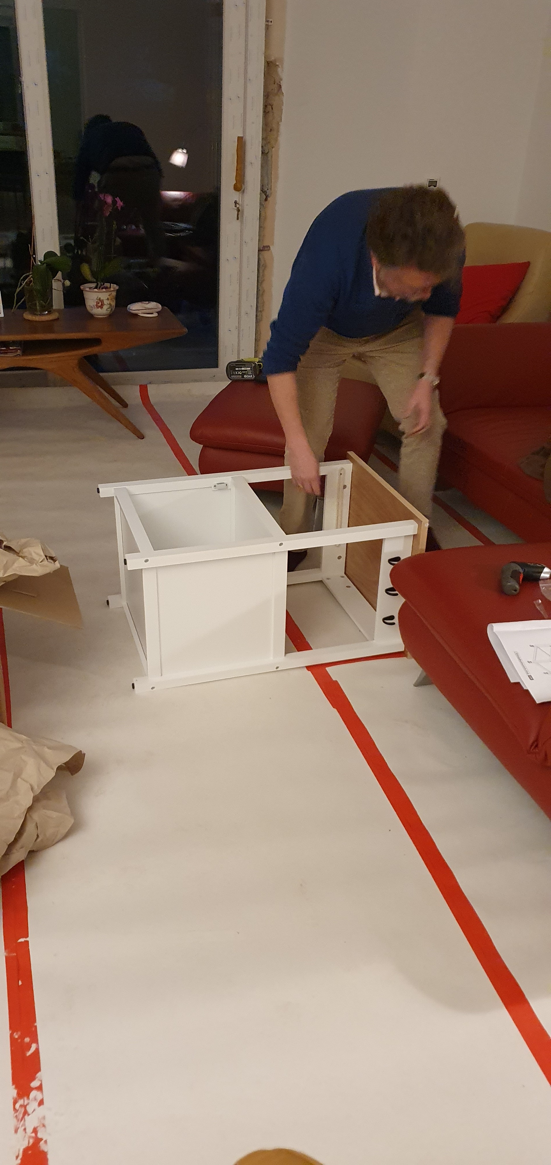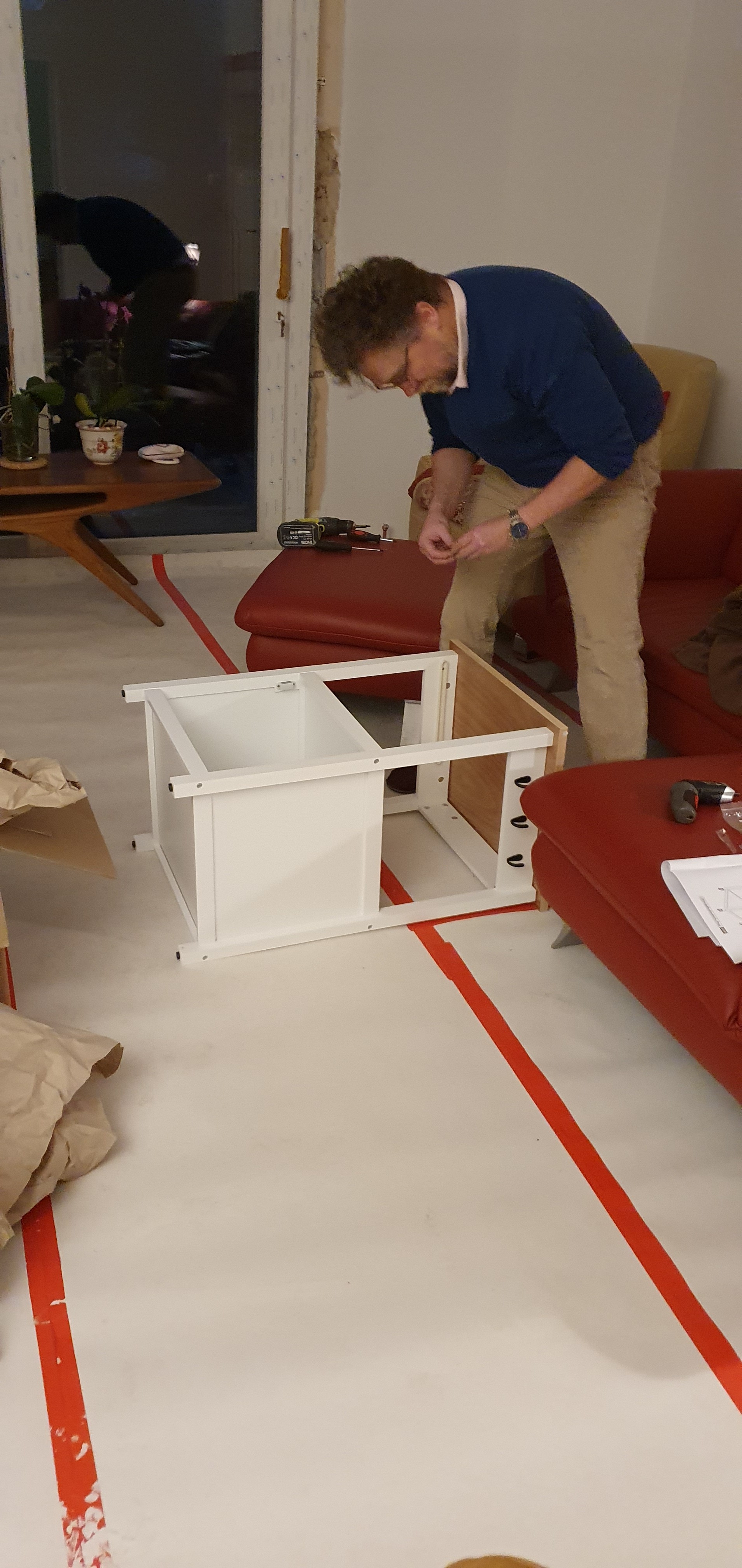 Mehr Flexibilität in der Küche haben wir letzte Woche durch einen kleinen Beistellwagen herbeigezaubert. Hier seht ihr, wie unter schweißtreibender Anstrengung der Wagen zusammen gezimmert wird. Ich muss sagen, das hat Charlie schneller erledigt als angenommen😄