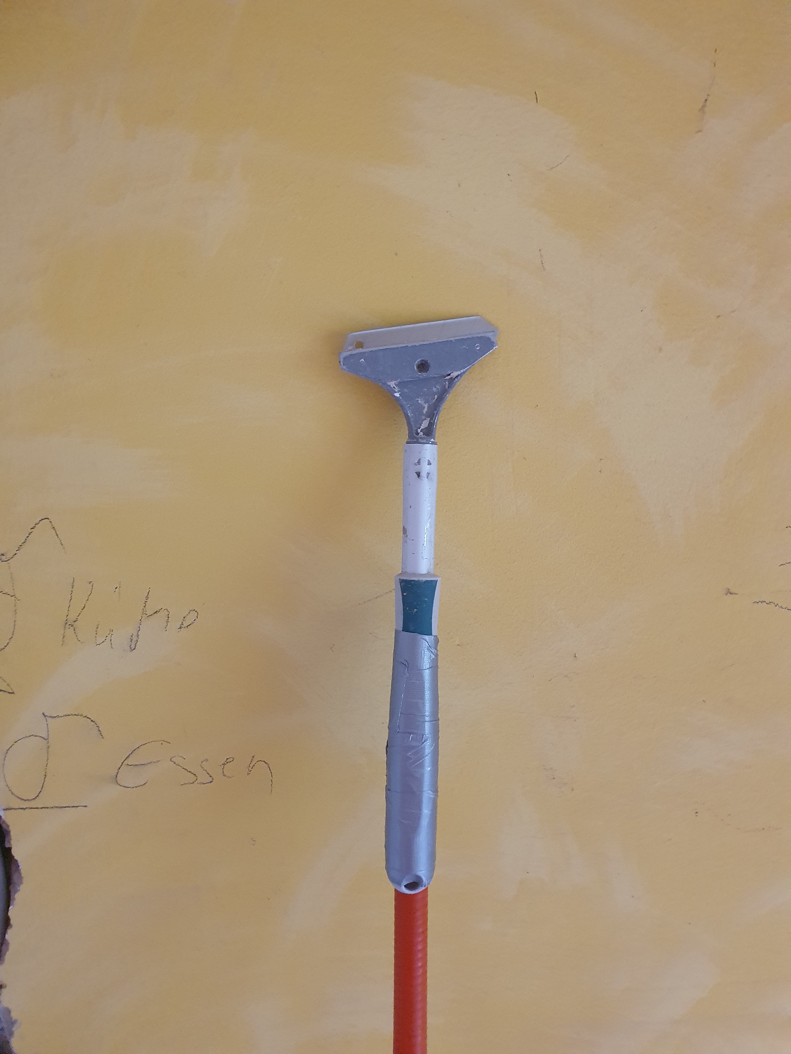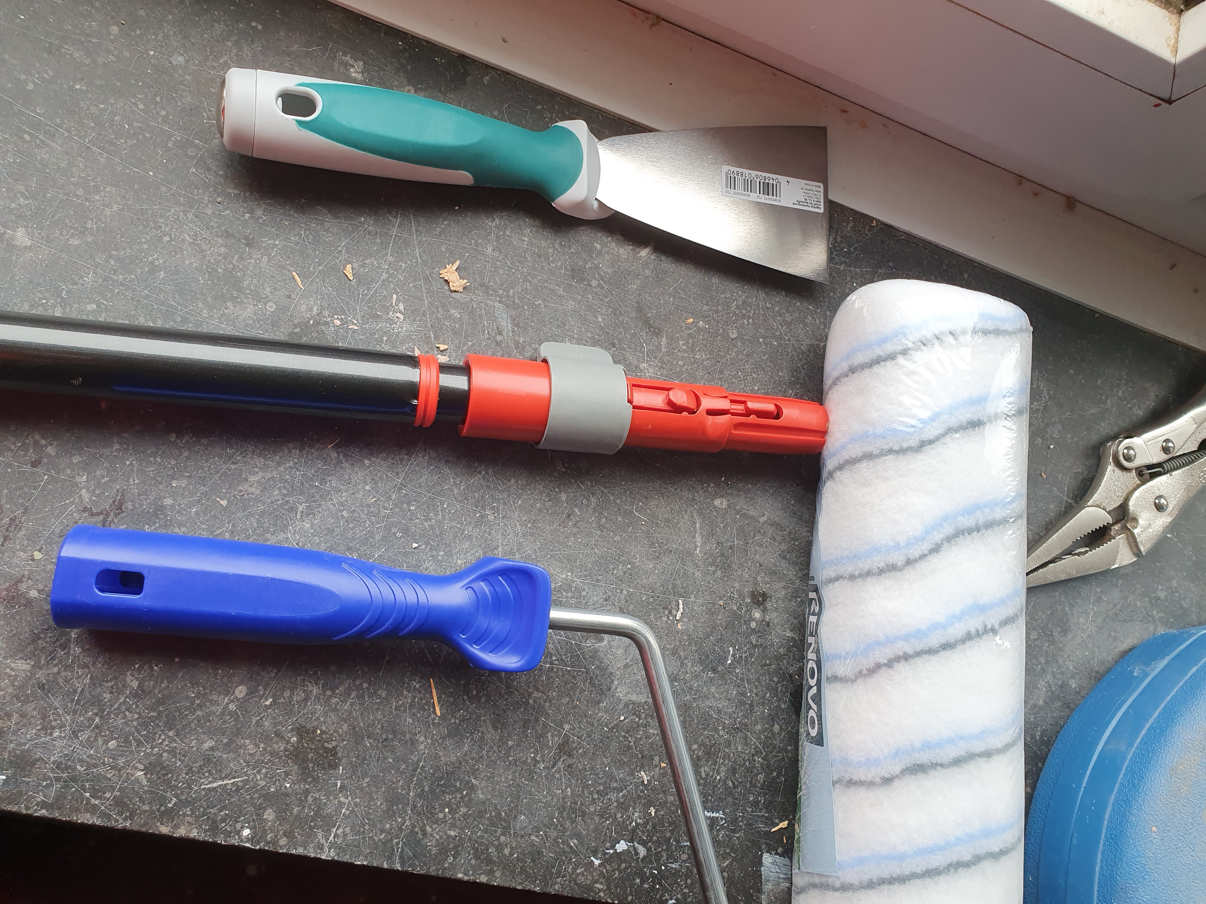 The scraper also fits on the top of the telescopic handle. So, hopefully less climbing up and down the ladder.