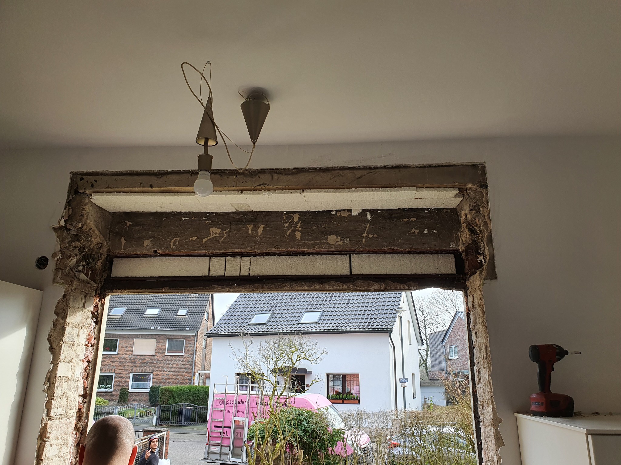 The first idea was to cut into the brick for a snugger fit. While this would have worked in the kitchen, it would also have filled the ground floor with dust. Luckily, this wasn’t possible in the dining room due to a slightly different construction and the potential risk of affecting the stability.
