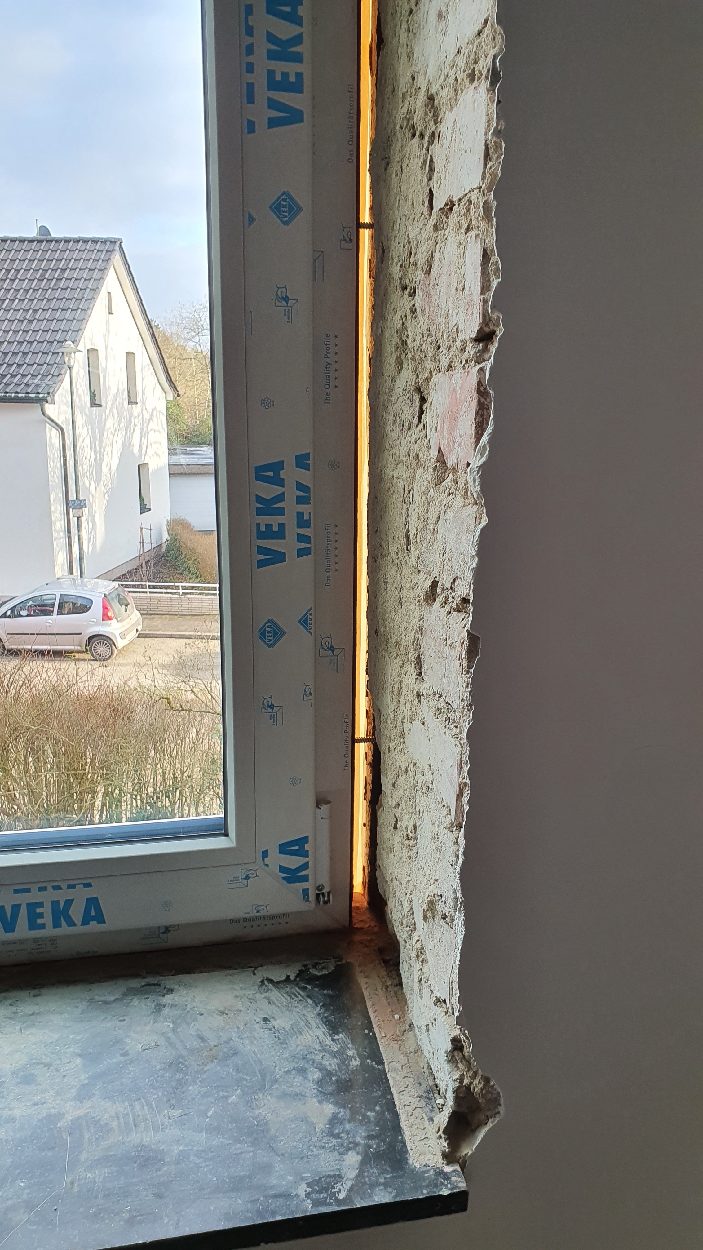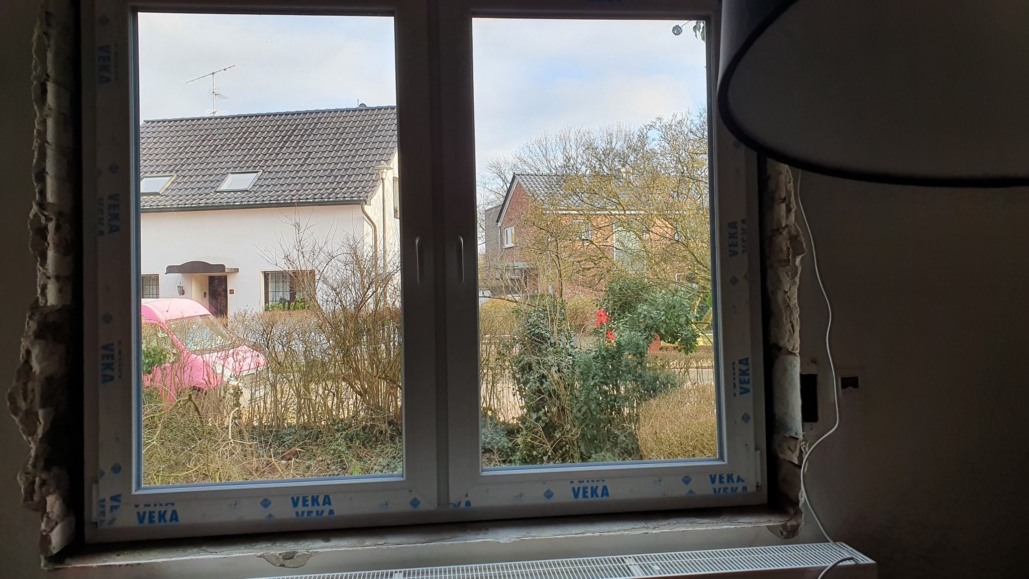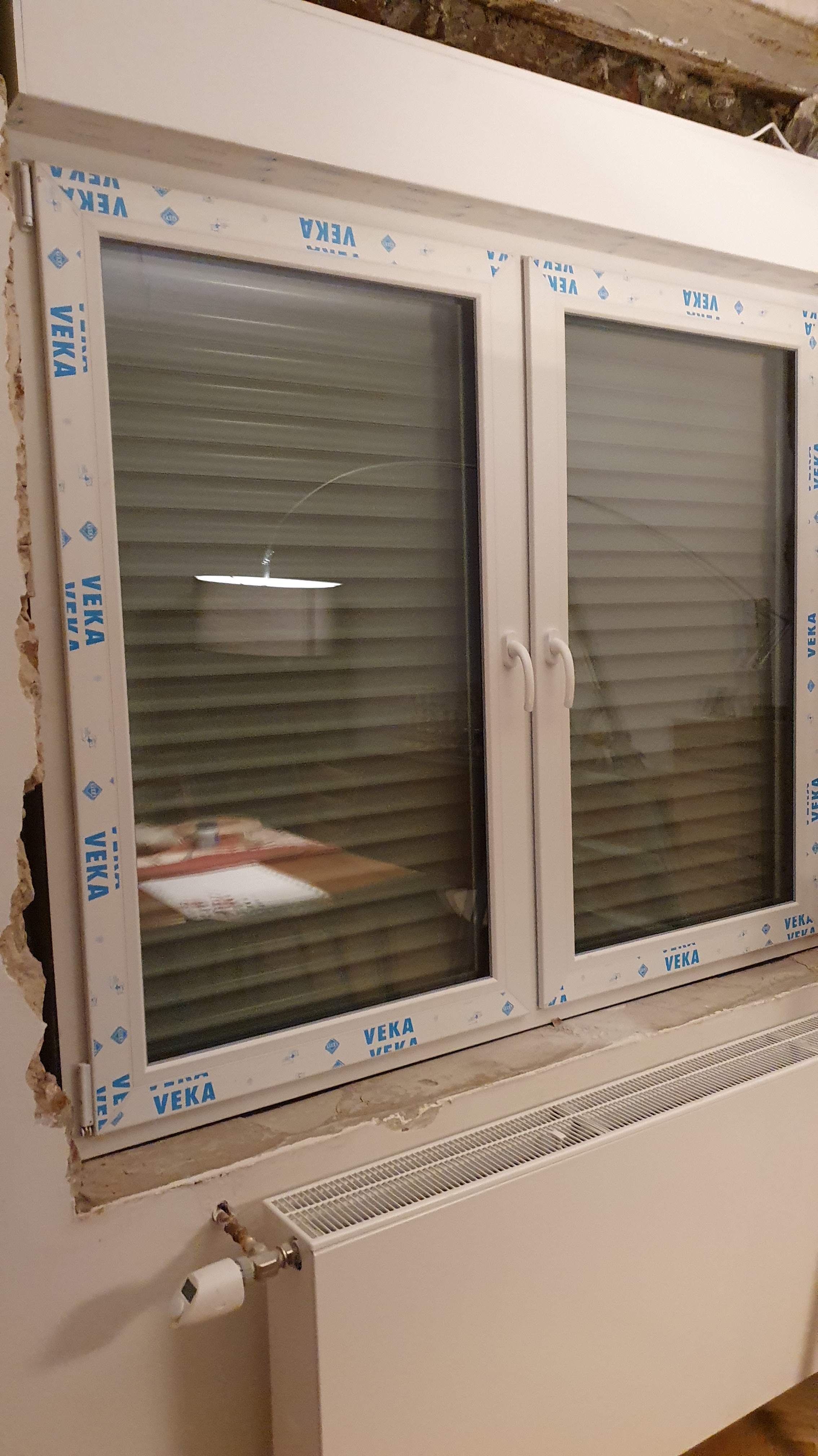 As a result, the windows were fitted slightly further forward into the room. We still need to work out how to fill and insulate the resulting spaces above and behind the shutter units so that the thermal insulation is the same around the window as the window itself. This is important to avoid cold spots, which would attract humidity and, eventually, mould.