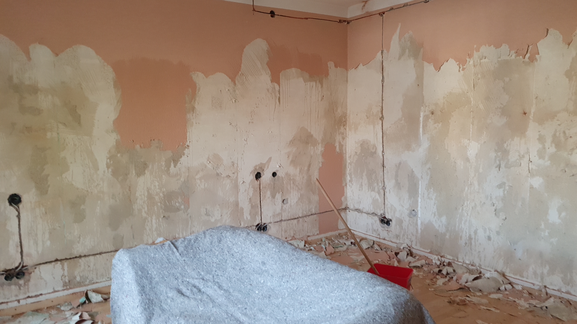 No workmen came today and we’re sort of working against the clock. So it was my turn to do some wallpaper stripping. I’ve got all the way round the room, but this woodchip is a lot easier than yesterday. Though it could also be the bicarbonate of soda I added to the water hoping it might break the glue down a bit.