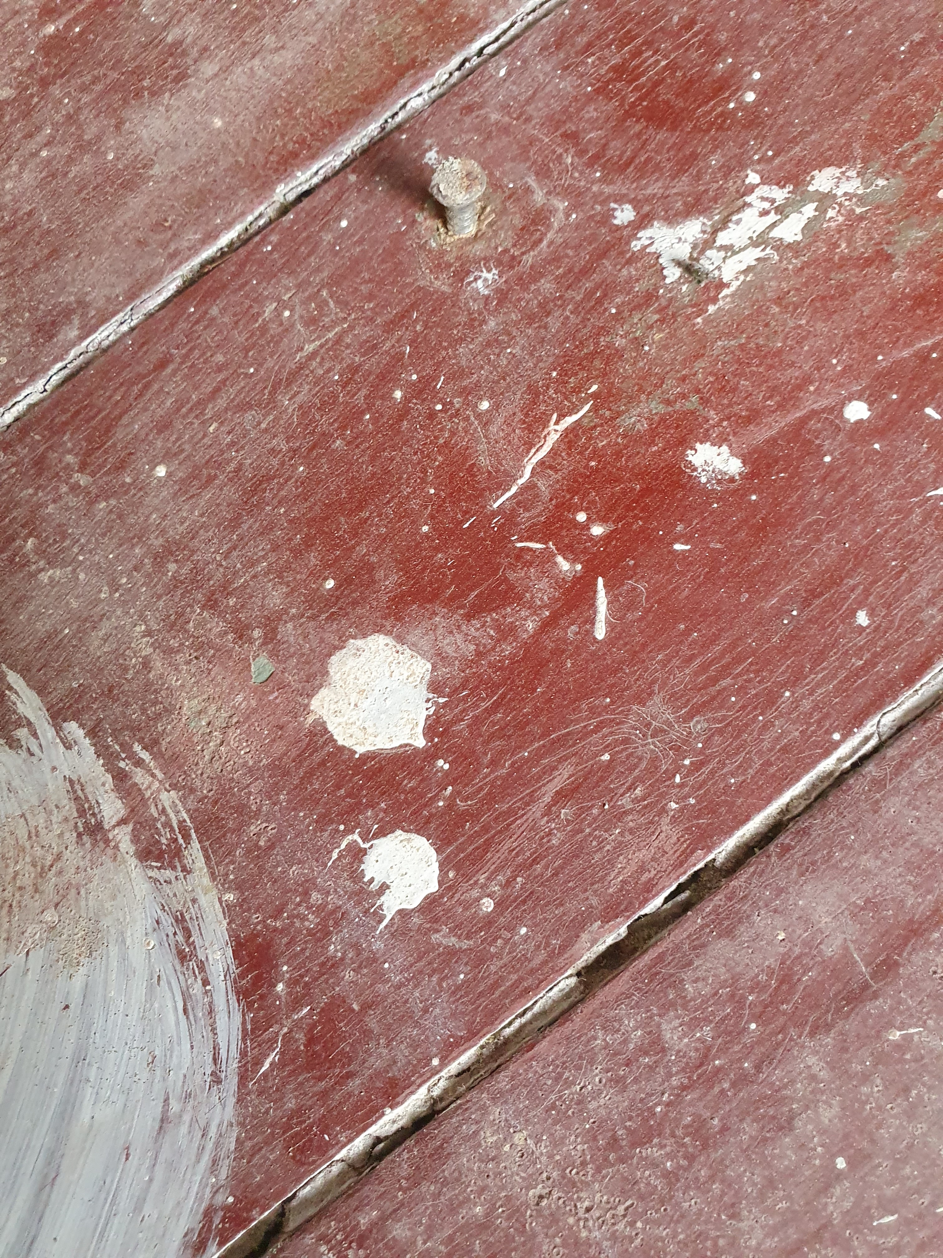 The boards were mostly held down by these barbed tacks. They generally came up easily with a bit of a twist or with a gentle lean from a claw hammer. But there were a load of the buggers and they’re not easy to see, though you can generally feel them well enough!