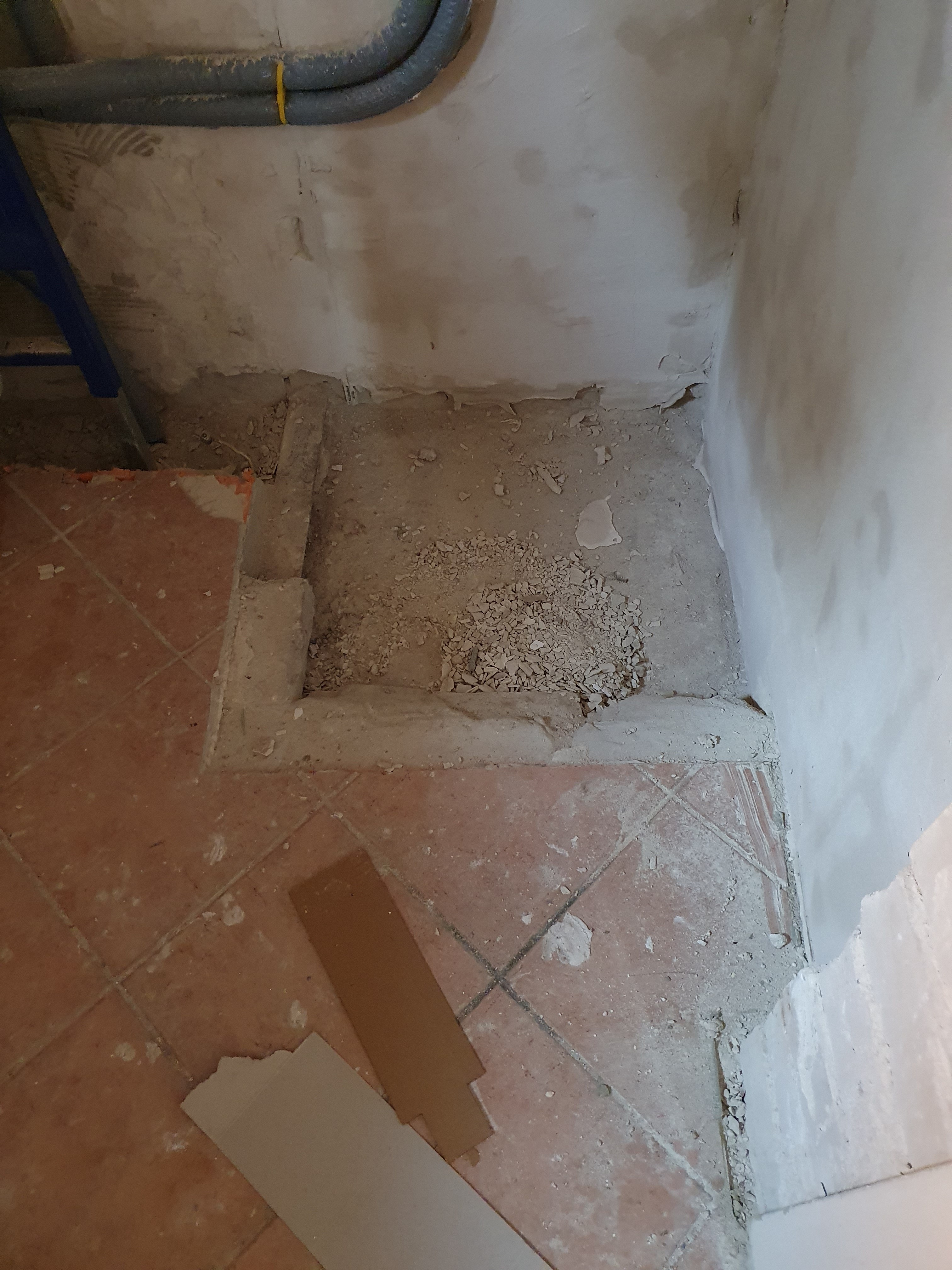 Just nobody told us how to do it. And, as usual, at the last minute, we’ve started. And this is one of the areas where the plumbers are happy to leave it to the tickets tilers. And vice versa.
