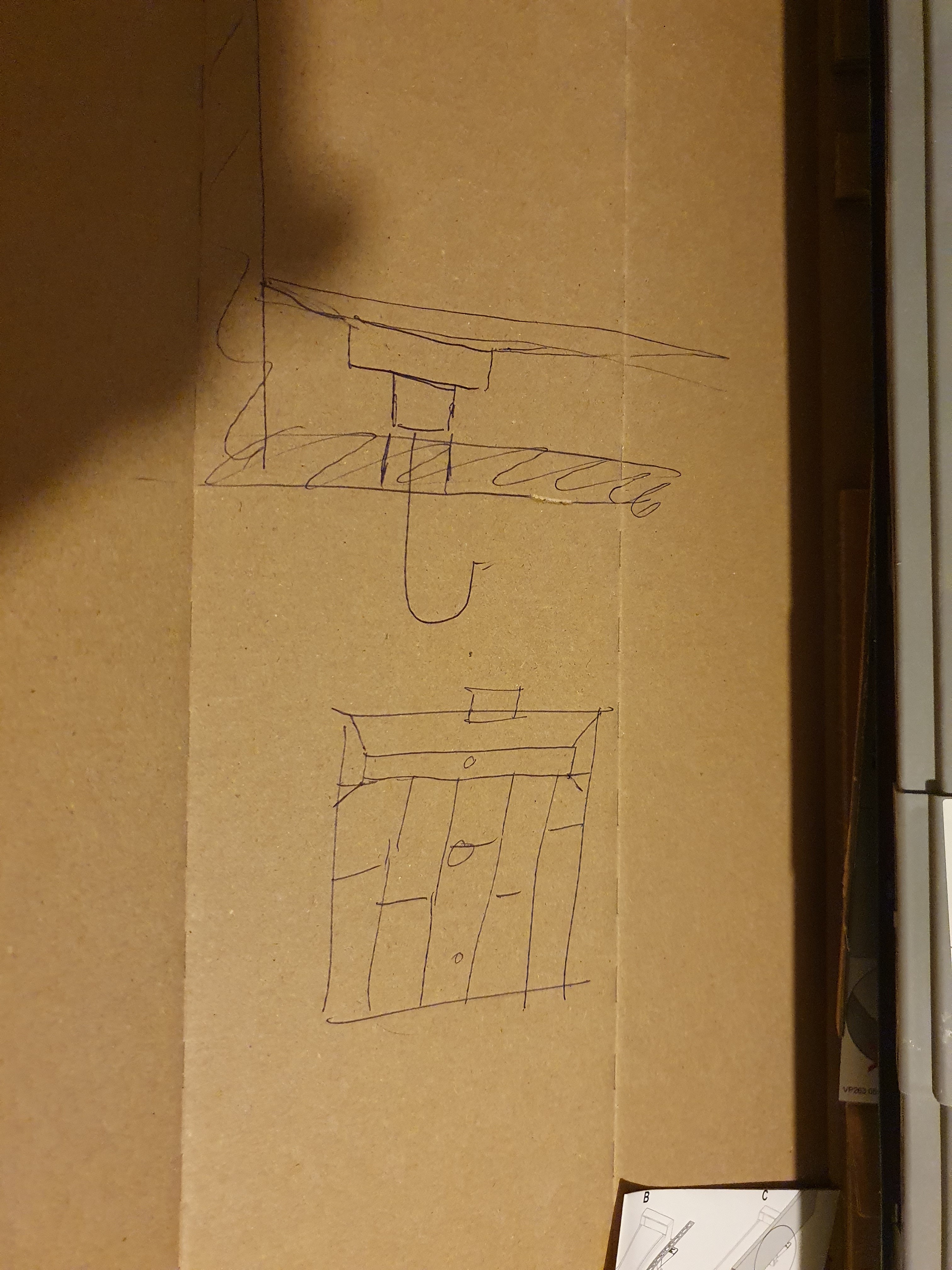 I had thought we’d cracked it when Mr Sauer arrived with the drain and we did discuss the layout and the need for a gradient of at least 2% for the water to be able to flow and he provided this handy sketch.