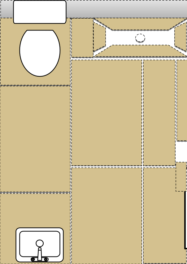 Once I’d looked closely at the sketch and remembered what was discussed, I realised what the real problem is: there has to be a slope in two directions; lengthways and between the bathroom wall and the shower wall. Unfortunately, you can’t put a single tile over two slopes. The solution, aside from using a dedicated base, is to use trapezoids, and you can sort of see this in the sketch.
