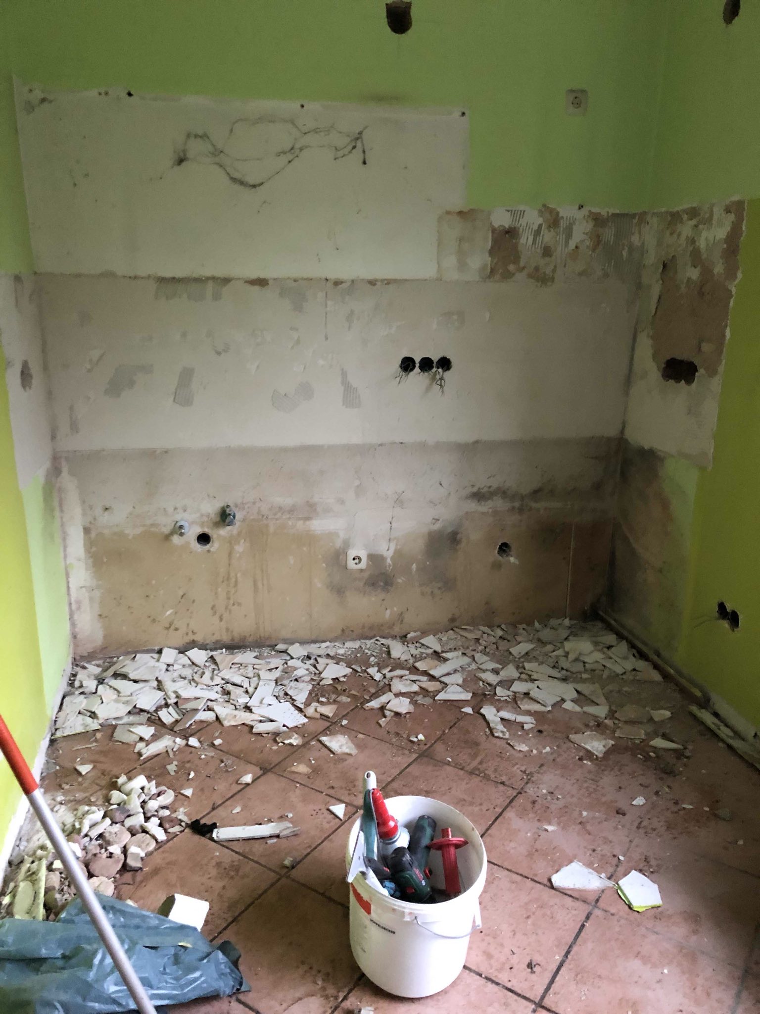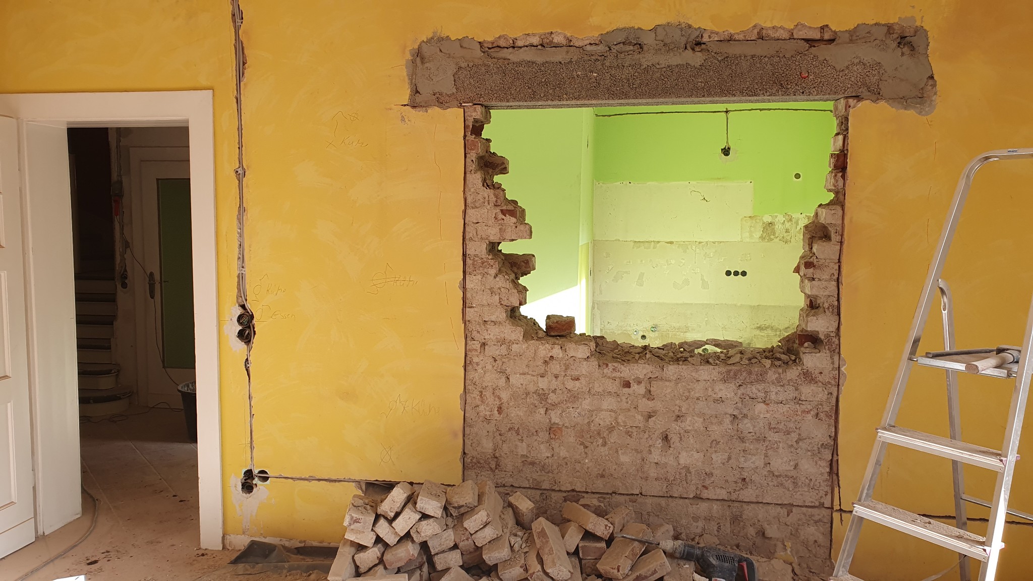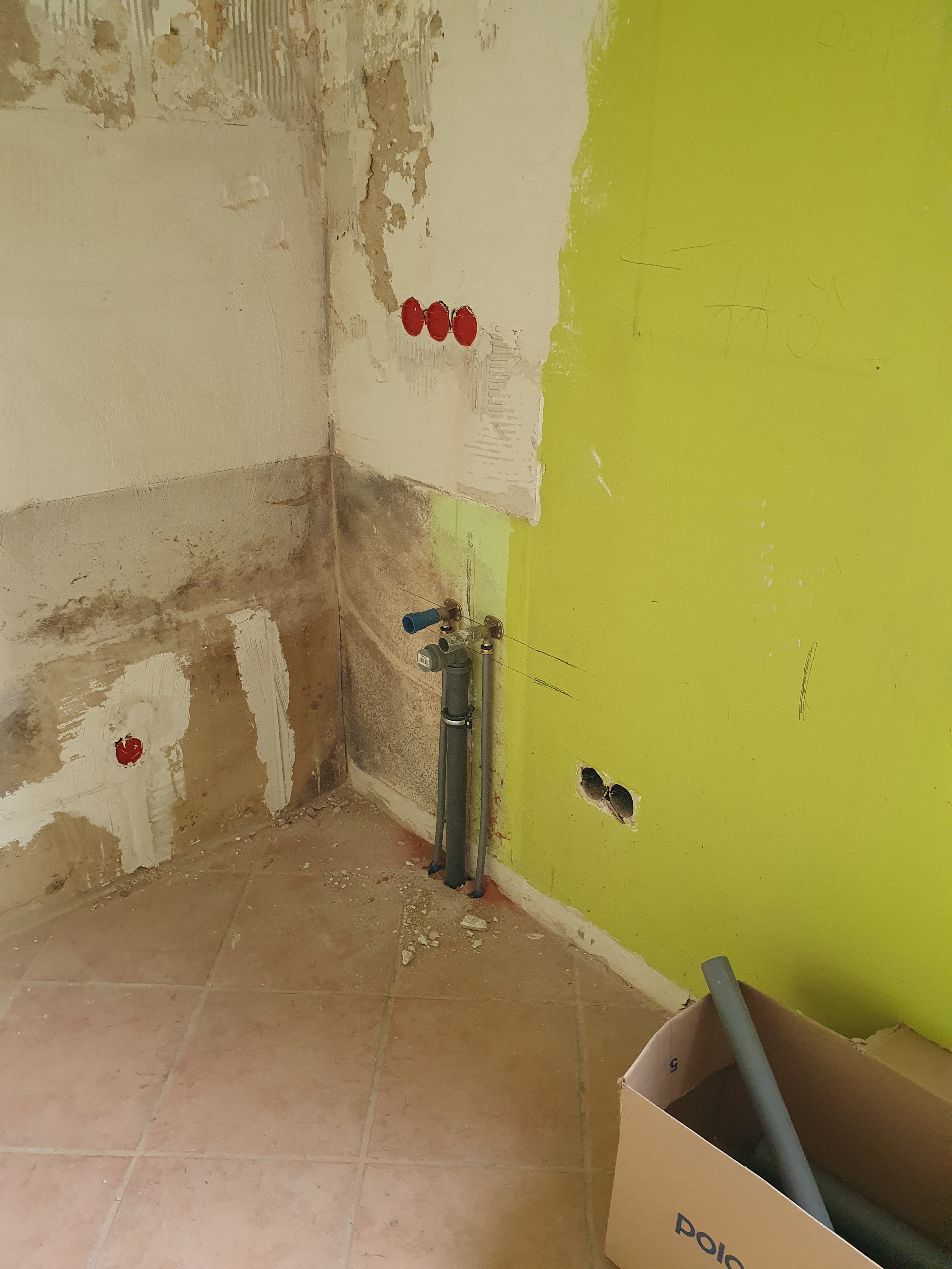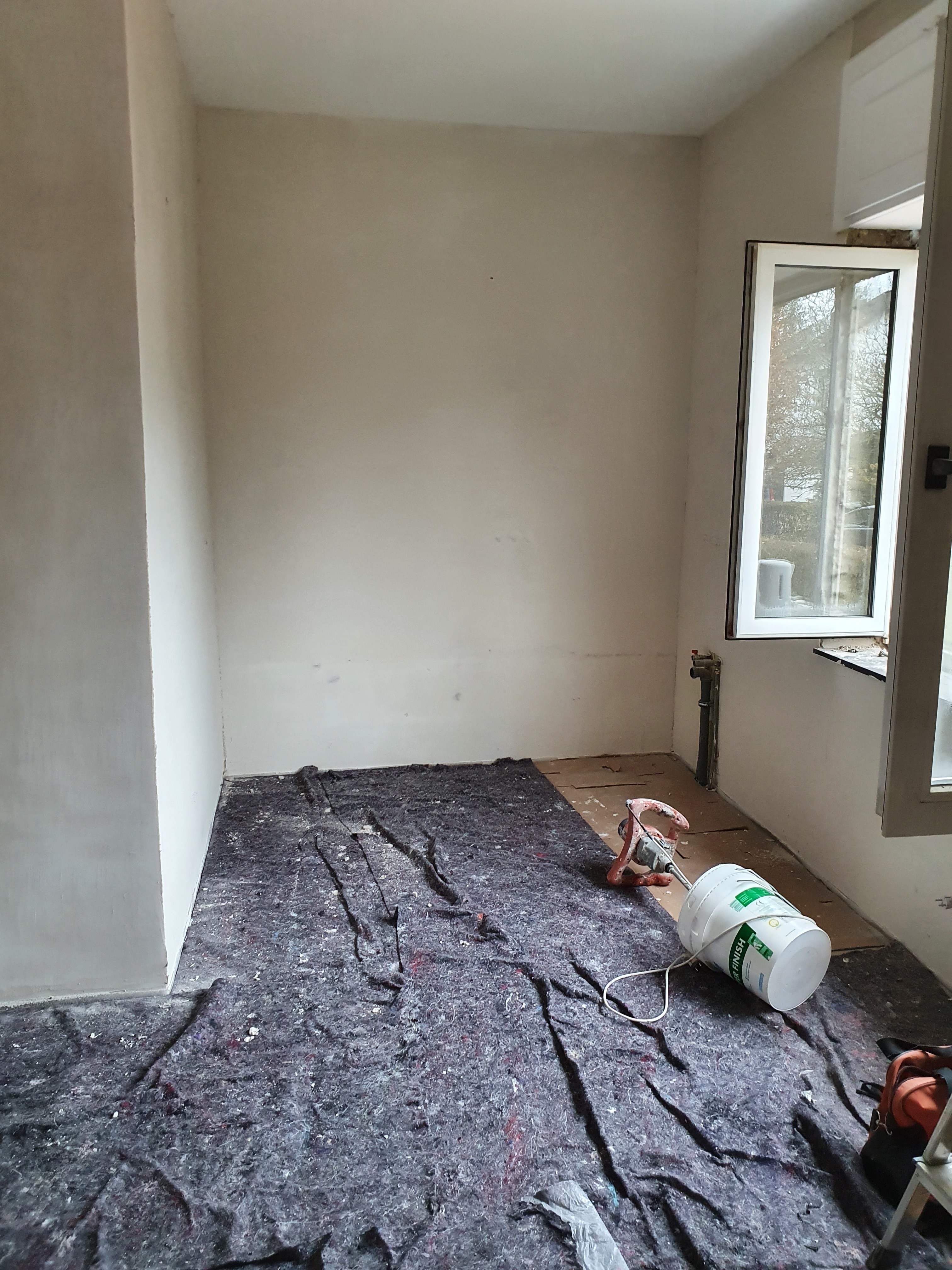 The kitchen as it was, and as it is now. Ivan and Sascha and Sergei have nearly finished plastering the ground floor. Once it’s finished the sockets can go in. We can paint everything next year.