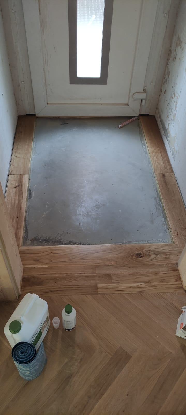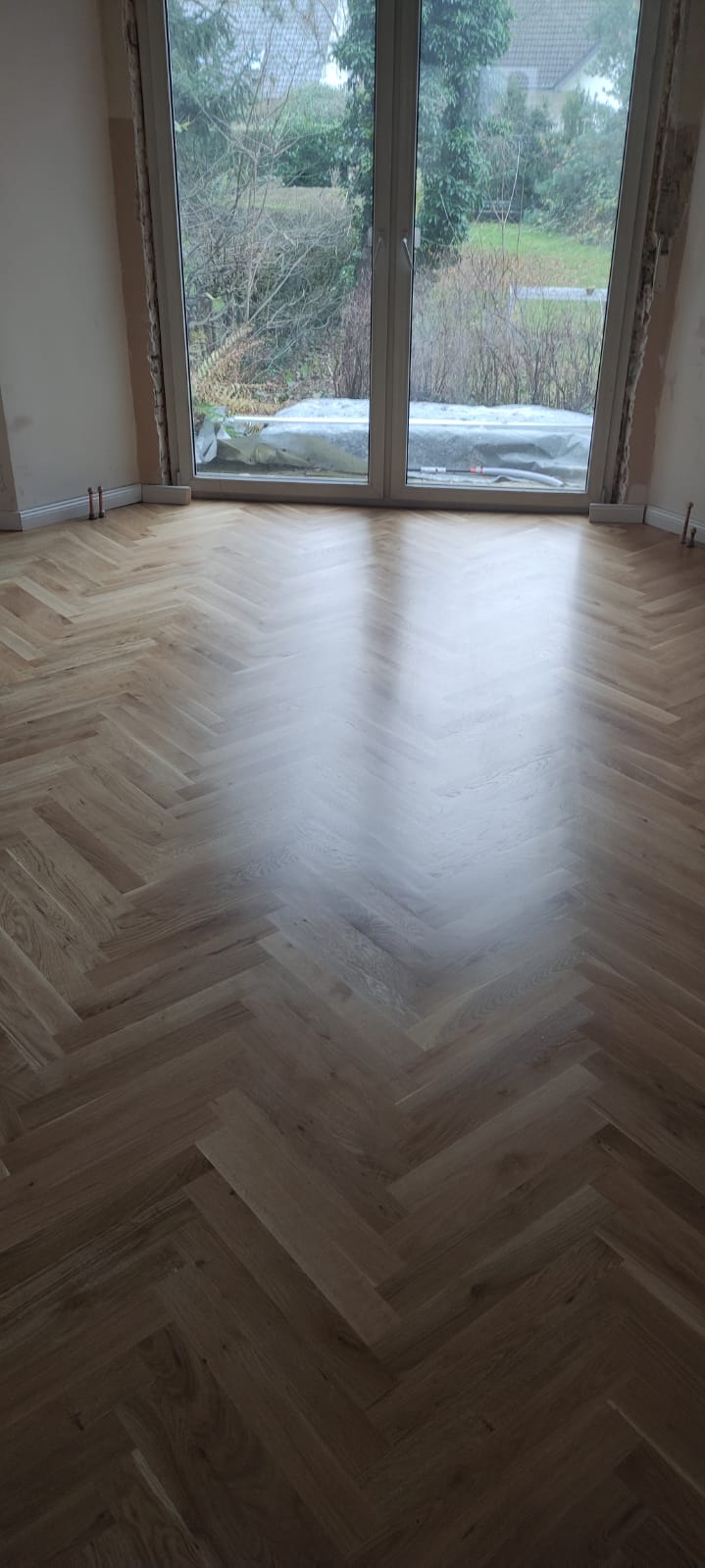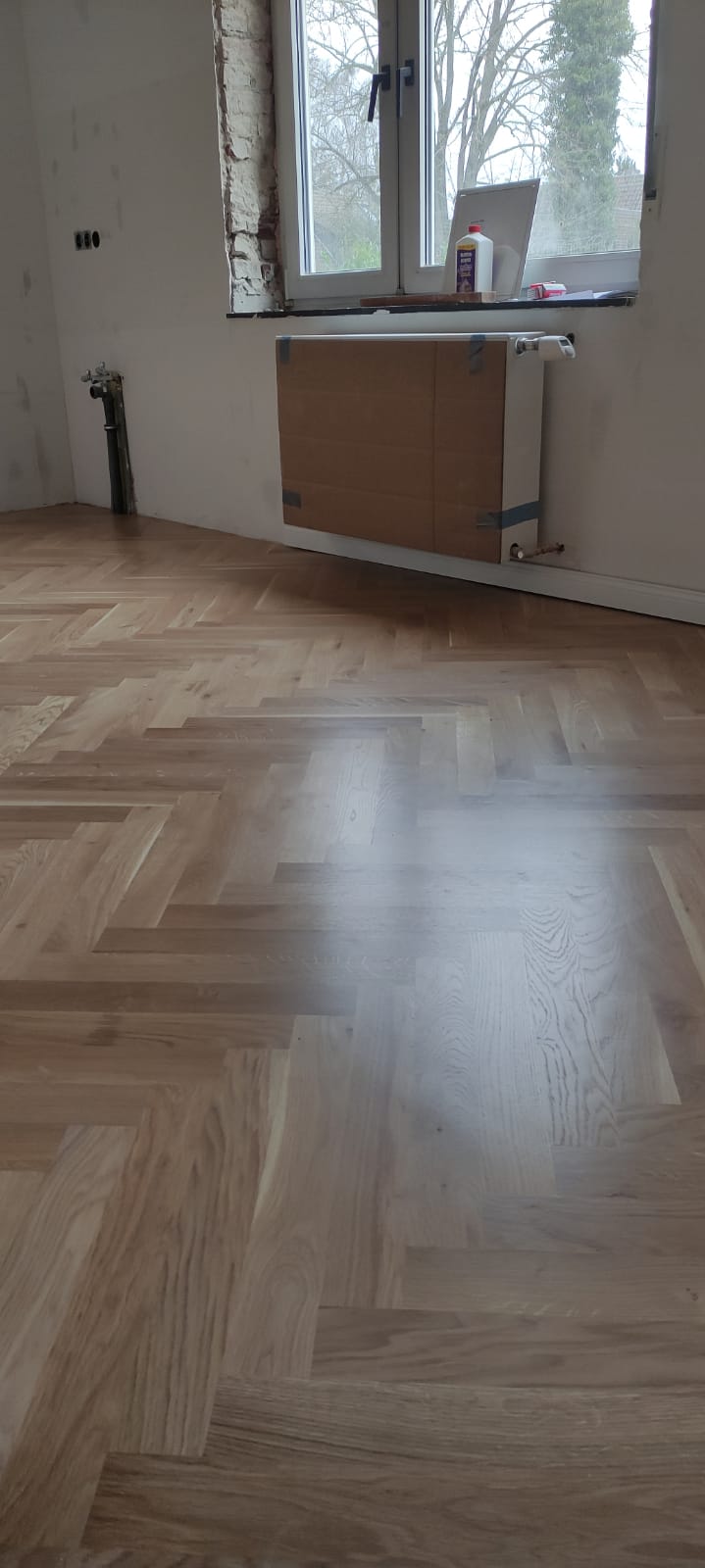 Got these pictures yesterday from Mr Schwalfenberg. It’s like a completely different house. The floor, with all the natural variations in the wood and the herring bone is just wonderful: the long lines are dynamic and structure just draws you in.
