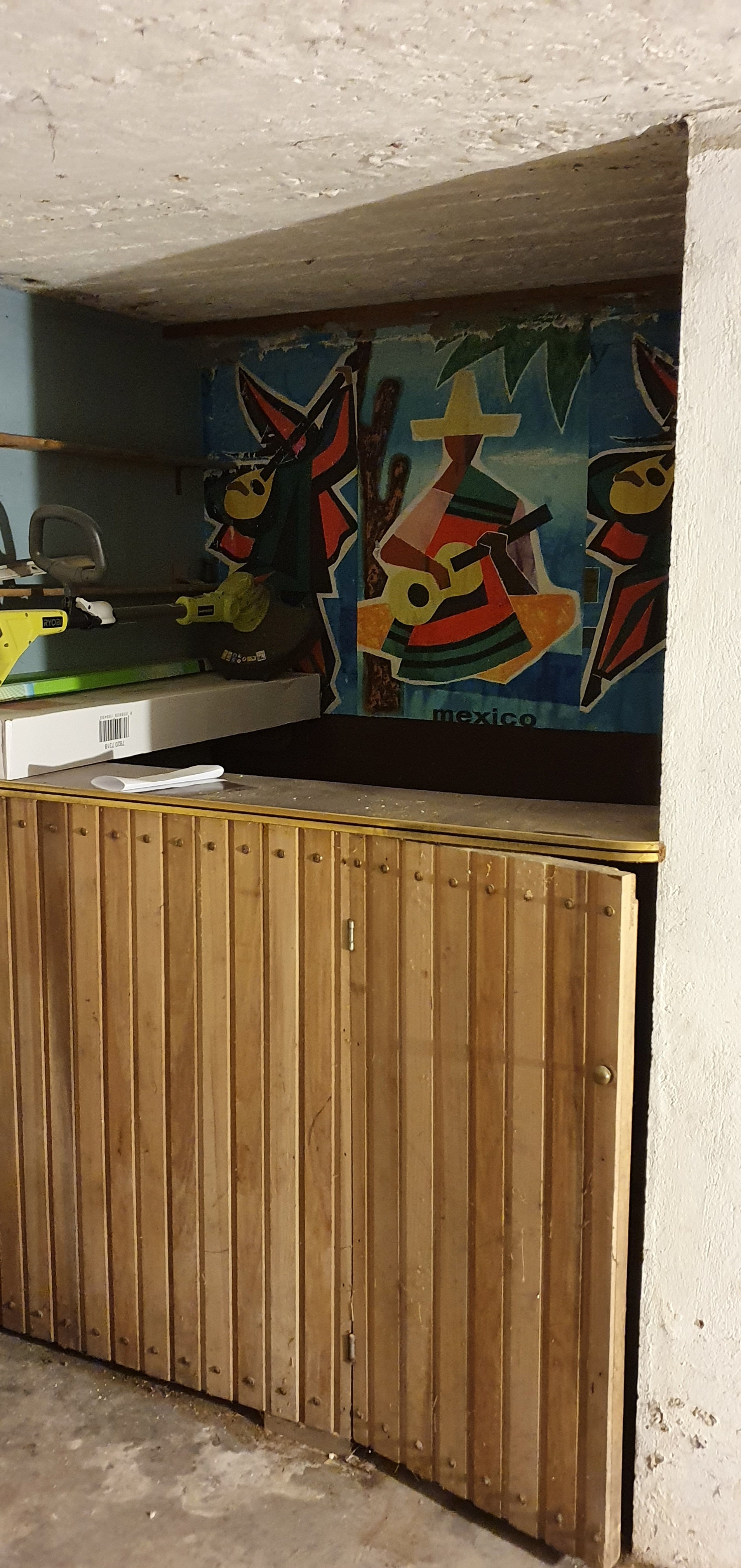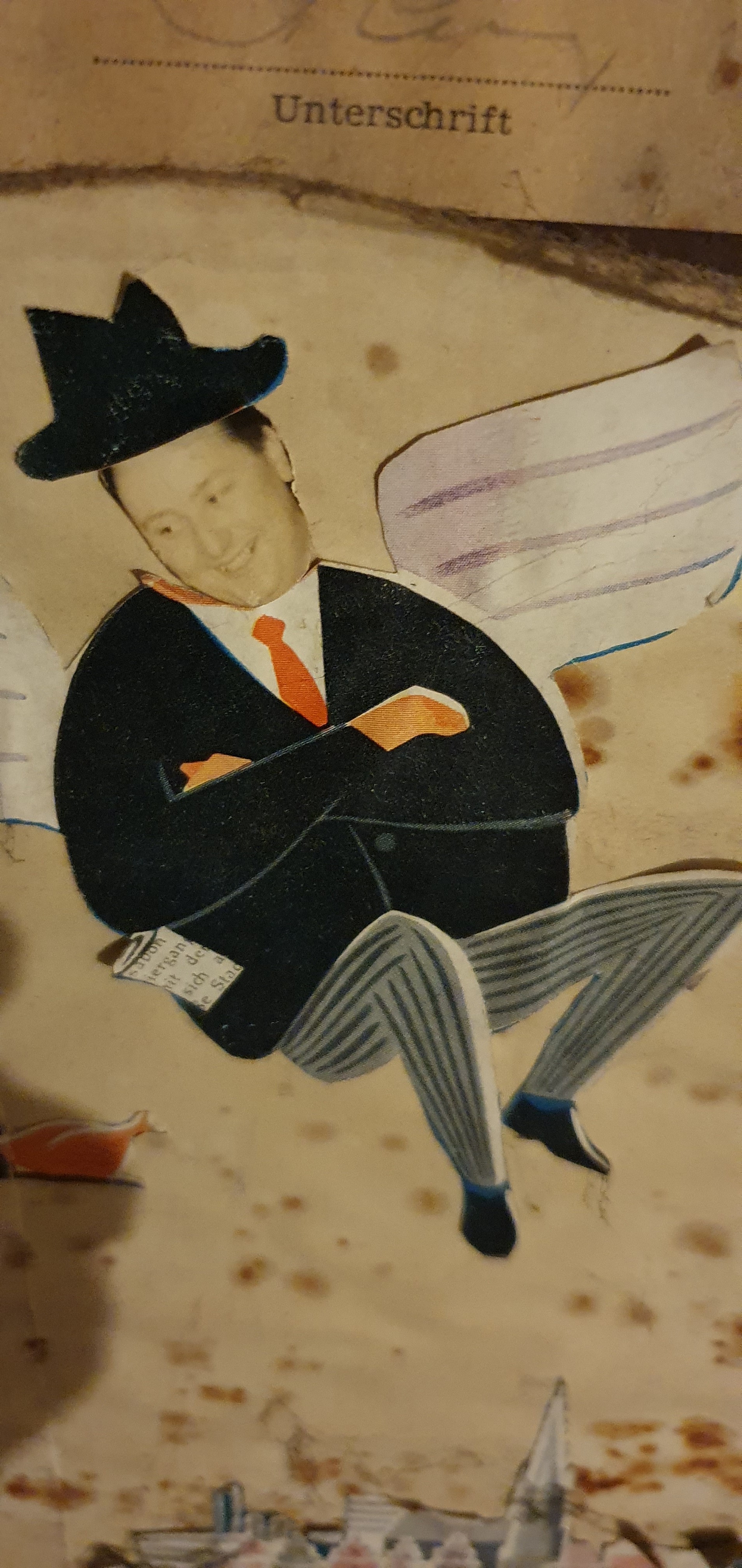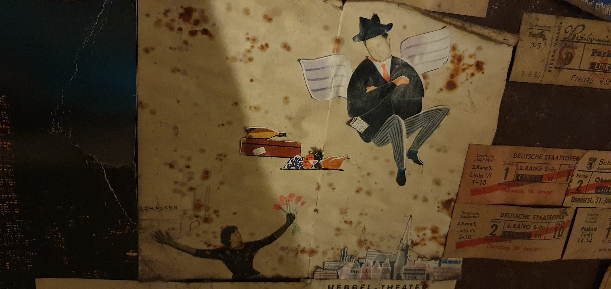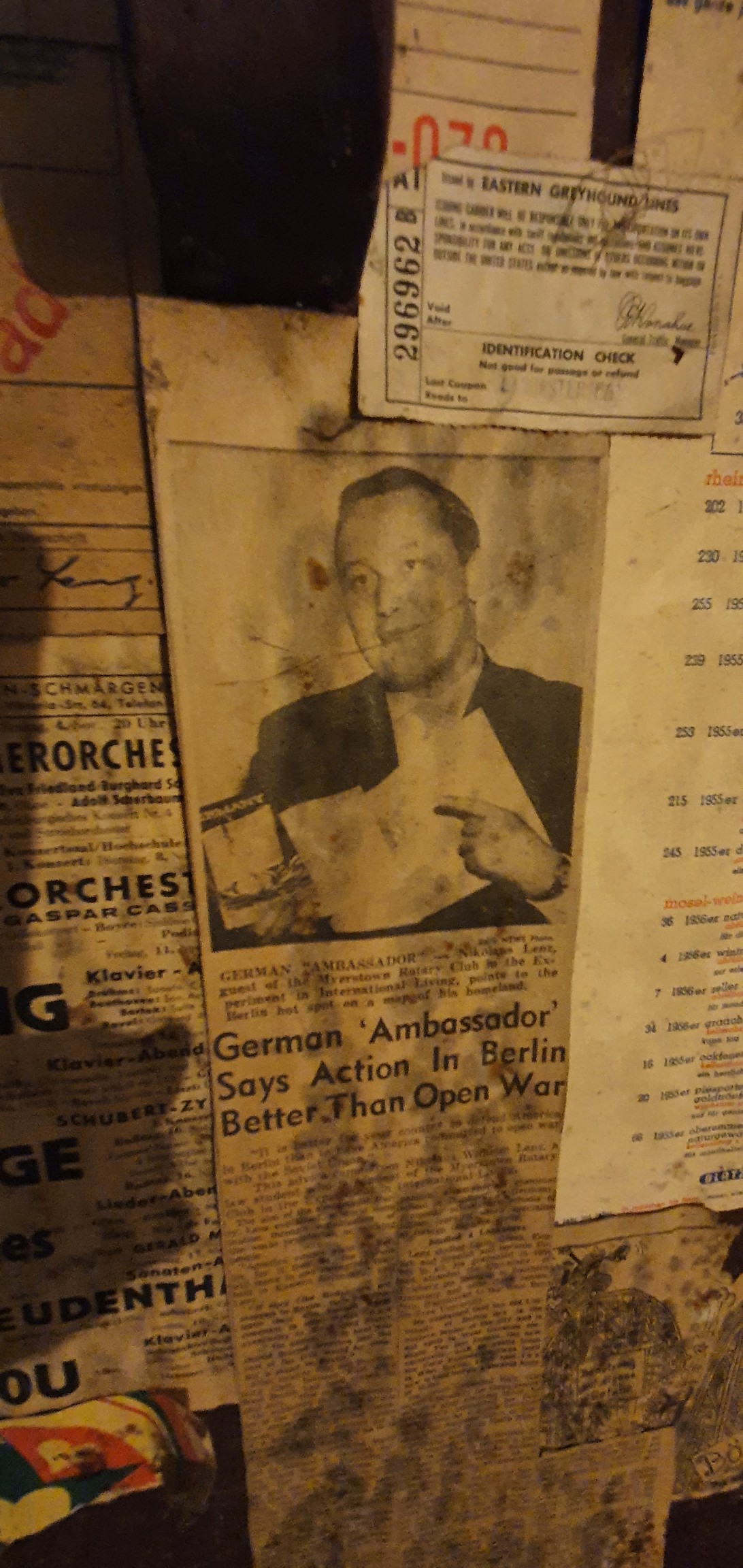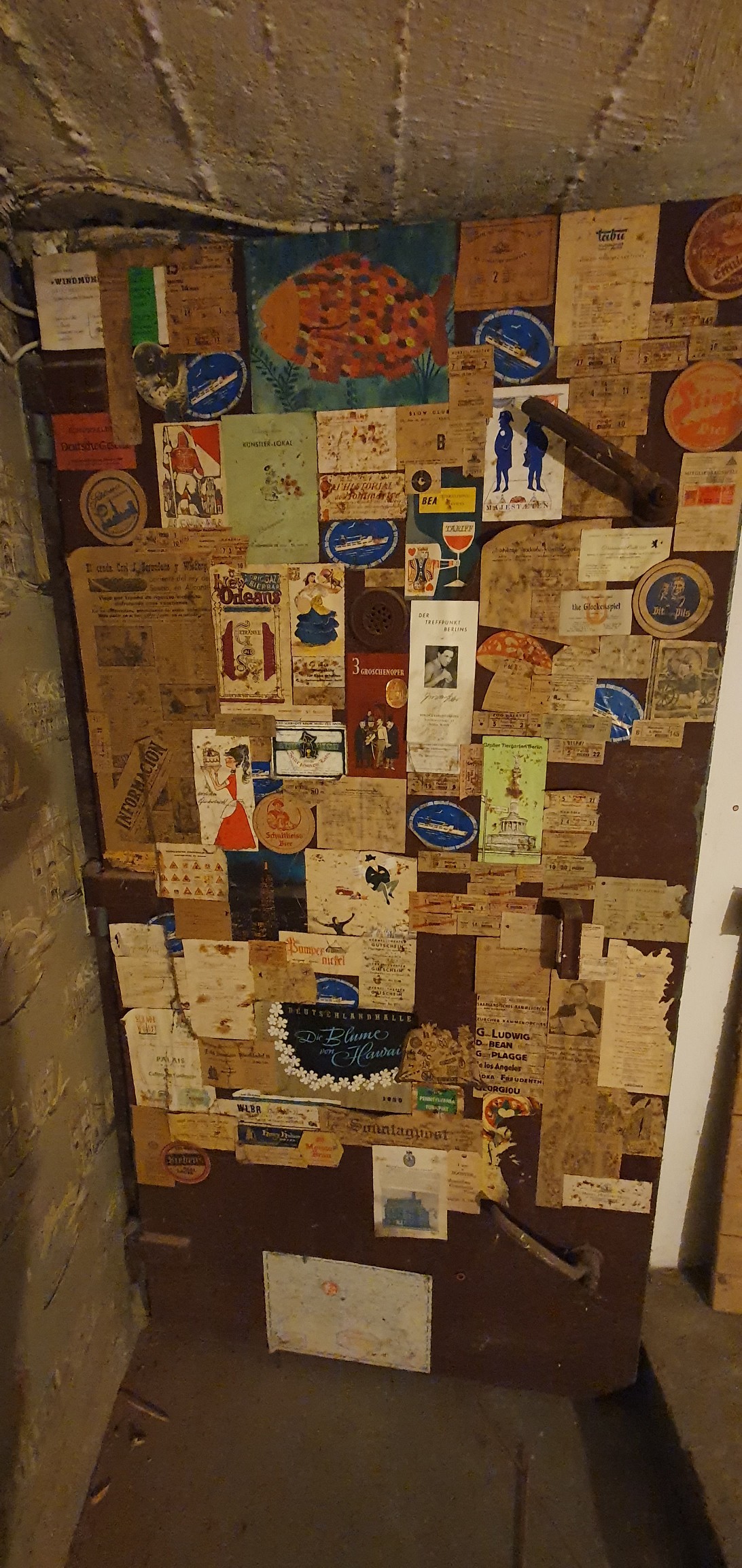 Meine Eltern, die nach dem Tod meines Opas in das Haus am Sengelsweg eingezogen sind, hatten sich eine Kellerbar eingerichtet. Die Bar ist immer noch vorhanden. Dort wurde auch der Polterabend gefeiert. Meine Eltern haben 1963 geheiratet. Auf der alten Türe zum Luftschutzkeller fand ich einige Artikel und Partyeinladungen.